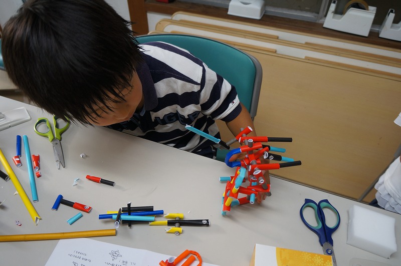 Aちゃんは家で作っているエンジェルクレイ(スクイーズ)の続きを、M君とS君はひねもすをしました。今回のひねもすは、プラモデル調にできるように、組み立て書を用意しました。