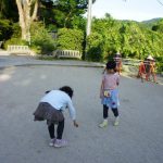 教室に戻る石段で「私は今日、魔女に会ったよ!先生は何に会った?」とMadoちゃんに訊ねられたので、「太陽が、先生のお腹に触ったよ!」と伝えました。ちょうど西日が差していたので、みんな「ほんとだ!」『私も!」と言ってくれました。