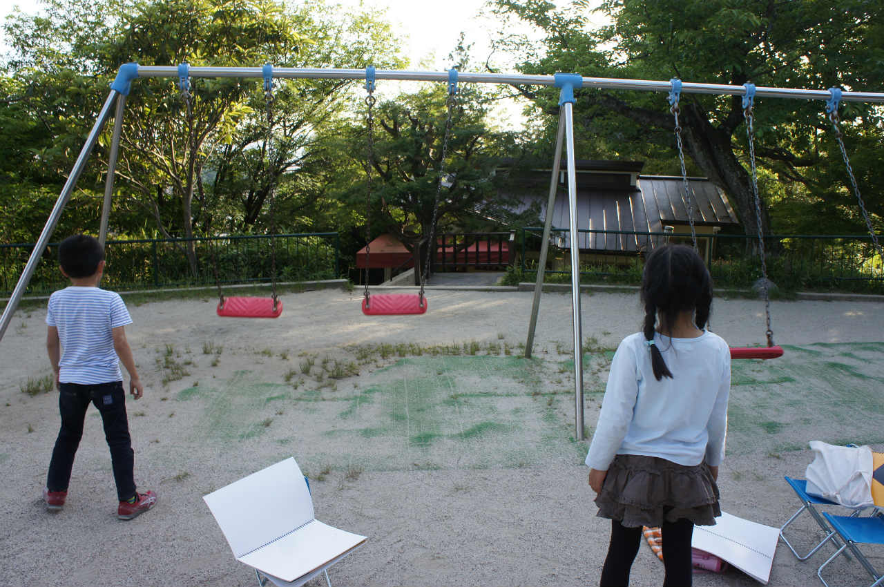 そして風がざわざわと吹き渡る中で、まずは、思いっきりブランコを漕ぎました。