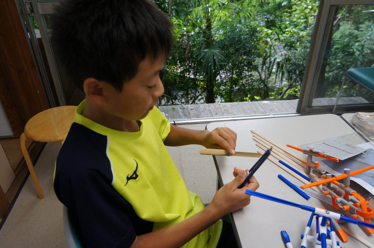 (最初の時間はChi君は船の続き、T君はホットボンドの玉、R君はヘリコプターを作りました)