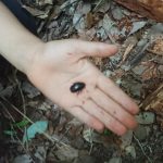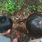 この日は森を散策しながら歩き、ひみつ基地の周辺の斜面を登り降りしたり、朽木の中にいる虫を探したりしました。