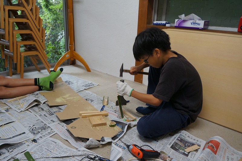 つくる5~6年(2018/7/2) 公開日:2018/07/02 つくる 福西です。 前回、竹トンボを作りました。そのときは市販のものを加工したのですが、今回は一から、竹を切るところから作りました。 1時間半かけて、1本の竹トンボと向き合いました。 春学期のつくるクラスは今回で最後です。次回は以下の通りです。 つくる5~6年 9/10 つくる3~4年 9/3 関連記事 つくる3~4年(2018/6/11)つくるA・B(0825)つくる1~2年(2017/2/16)つくる2~3年B(2016/5/19)つくるA(11/12) 投稿ナビゲーション つくる3~4年(2018/6/25)つくる3~4年(2018/9/3)