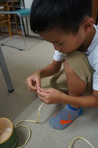 竹を自分で切り、一から制作しました。M君はのこぎりを使ったことがほぼ初めてということで、その練習もかねました。この日だけでもだいぶ上達していました。