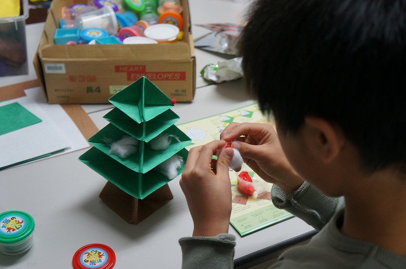 つくる3~4年(2018/12/10) 公開日:2018/12/10 つくる 福西です。冬学期もよろしくお願いいたします。 クリスマスツリーを、折り紙や粘土を使って作りました。 つくる3~4年の年内の授業は今日でおしまいです。次回は1月7日(月)になります。 関連記事 つくるA・B(0825)つくるB(2015/02/02)つくる3~4年(2016/9/5)つくるA(0309)つくる2~3年(2022/2/24) 投稿ナビゲーション つくる5~6年(2018/12/3)つくる5~6年(2018/12/17)