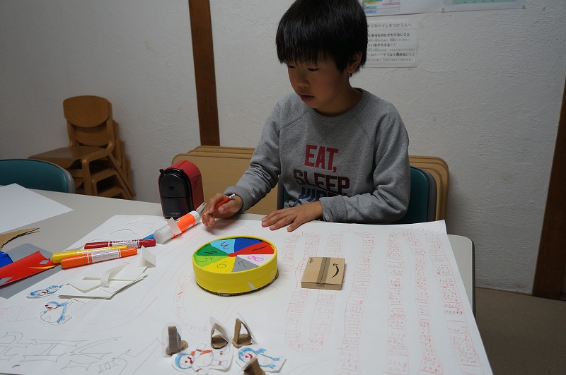 S君が作りたいもの(人生ゲーム)を考えて来てくれたので、それを一緒に作りました。