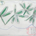 「わたしは、山ごやからおりるとちゅうにみどりの川や石をみました。・・・ちゃ色オレンジみどり白ににくろのてんてんがある石をひろいました。・・・石の形もすごくおもしろいしさわるのもいろいろ楽しかったです。白とオレンジががったいしているみたいでした。よーくみたらぴかぴかしはじめたりふしぎですごくむちゅうになりました。石は、みどりの川にいれてみたらまざってもっときれいでした。・・・どの川にいっても石と川ずっといっしょだからお友だちなのかなとおもいました。・・・」
