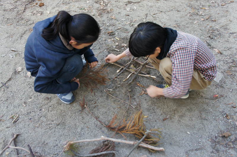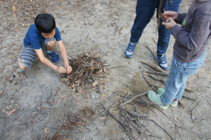 久しぶりに焚き火をすることになりました。焚き木の組み方はもう、ある程度みんなに任せています。マッチの火をきちんと焚き木に移すことができるか、そのあと、火を育てられるか、この2つのステップが肝心で、いつもドキドキするところです。