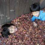 いつもより少し早めに作業を切り上げて教室に戻り、最後に「落ち葉浴」をしてこの日のクラスは終わりました。(落ち葉、とっておいてよかったです^^)