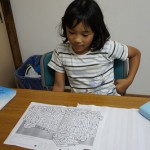 ちなみに、このクラスでは、最初の時間には、以前お伝えした「足し算パズル」や「迷路」、また「ドリル」をしています。(下の写真がそれです^^)