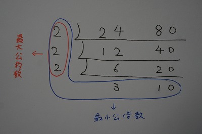 結果のどこが最大公約数で、どこが最小公倍数にあたるかを確認しました。