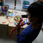 R君は釣り竿とマジックハンドを作りました。釣り竿はリールのレバーが回ります。