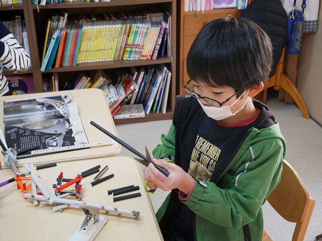 Ko君は、電車の制御盤(進むと止まるを制御するレバー)を作りました。