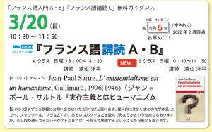 3/20(日)「フランス語講読A・B」(渡辺洋平)10:30〜11:50