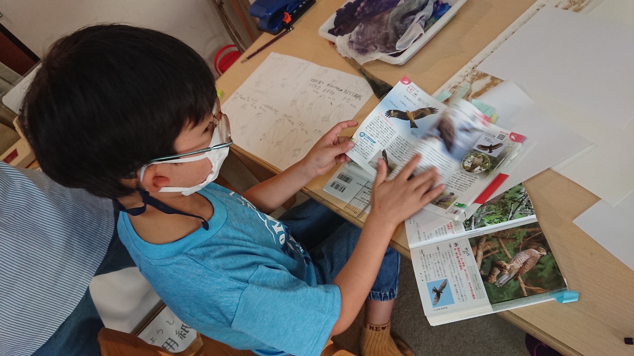 Kenun君は、鳥図鑑を広げ、タカ・ワシの図鑑づくりを続けています。