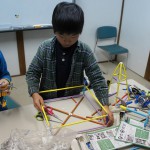 特筆すべきは、小学生が自分たちで考えた「プロレス」の展開です。Y君がたくさんロボットを作って、複数を戦わせはじめたことがきっかけで、K君がプロレスを思いつきました。そして「トーナメントにエントリーするロボットを作ろう!」と、みんなに提案しました。Hu君はプロレスリングをこしらえました。そしてK君が主に率先して考えたルールでは、じゃんけんで勝つと技が決められ、2回連続で大ダメージ、3回連続で勝つと必殺技が決まって勝負あり、ということだそうです(笑)。そのためにK君の作ったじゃんけんカードが出色で、それがみんなの支持を得て、かなりのハイテンションで楽しく遊んでくれていました。こういう展開が、「物語をモノにつける」ということなのでしょうね(^^)。