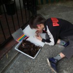 Y君の絵のモデルとなってくれる幼虫はといいますと、落ち葉の下の腐葉土から2匹、わりとすぐに見つかりました!